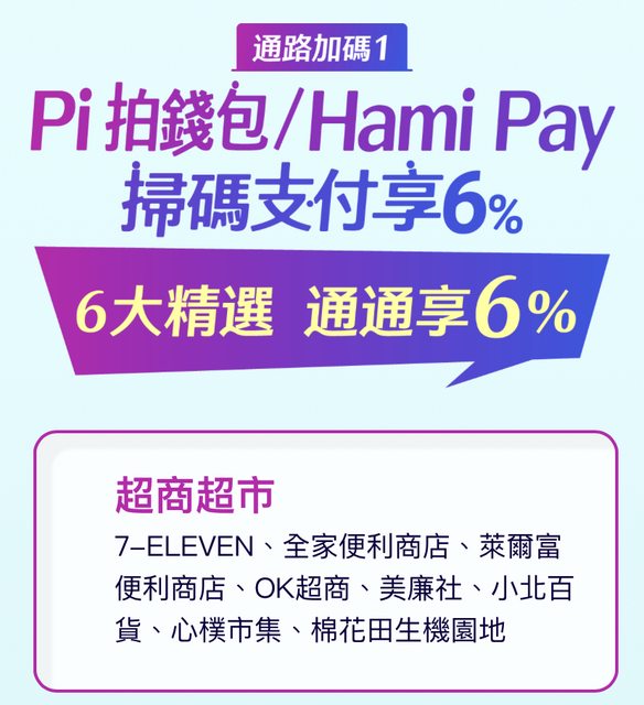 → alex1973 : 一般合格通路是 1%+5%, 超商是 0%+6%, 限掃碼交易07/14 23:09