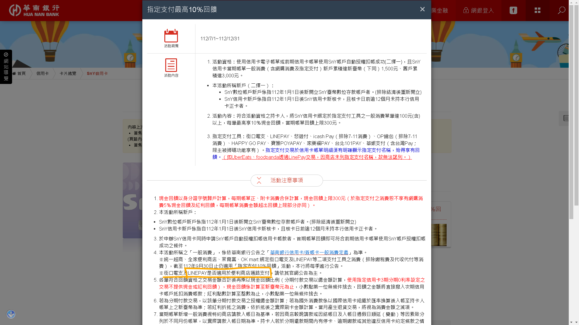 推 repast : 街口支付綁華南sny滿百一定有10%,拿好幾期回饋了 07/19 15:56