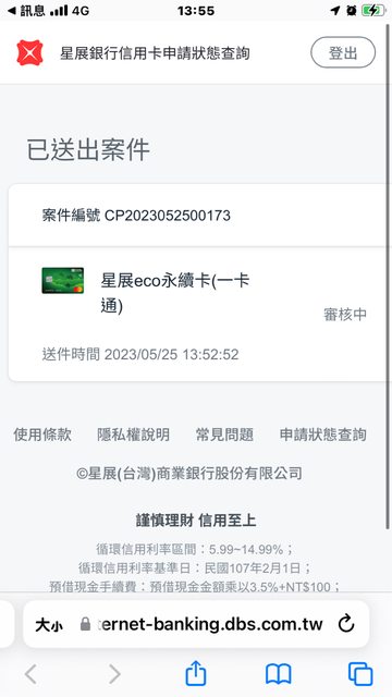 標題Re: [心得] 警世文 星展ECO卡 申請過期(已核卡)