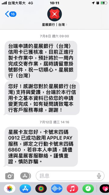 : 突然收到核卡簡訊, 收到卡片設定Apple Pay.