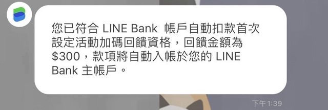 → sakala : 10號徵審卡到現在.... LINE Bank綁定自扣禮的300只 07/29 06:51