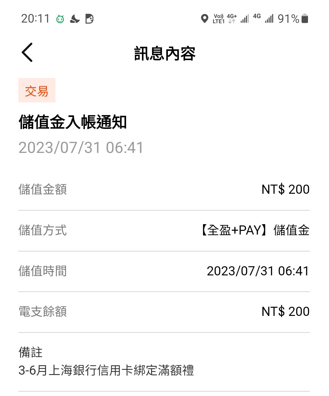 標題[心得] 全盈+PAY綁上海卡消費滿額10%回饋 下來了