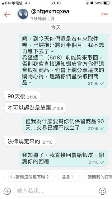 → q2520q: 期限內來拿退貨不然物權就會轉移到你身上123.241.242.216 06/17 09:15