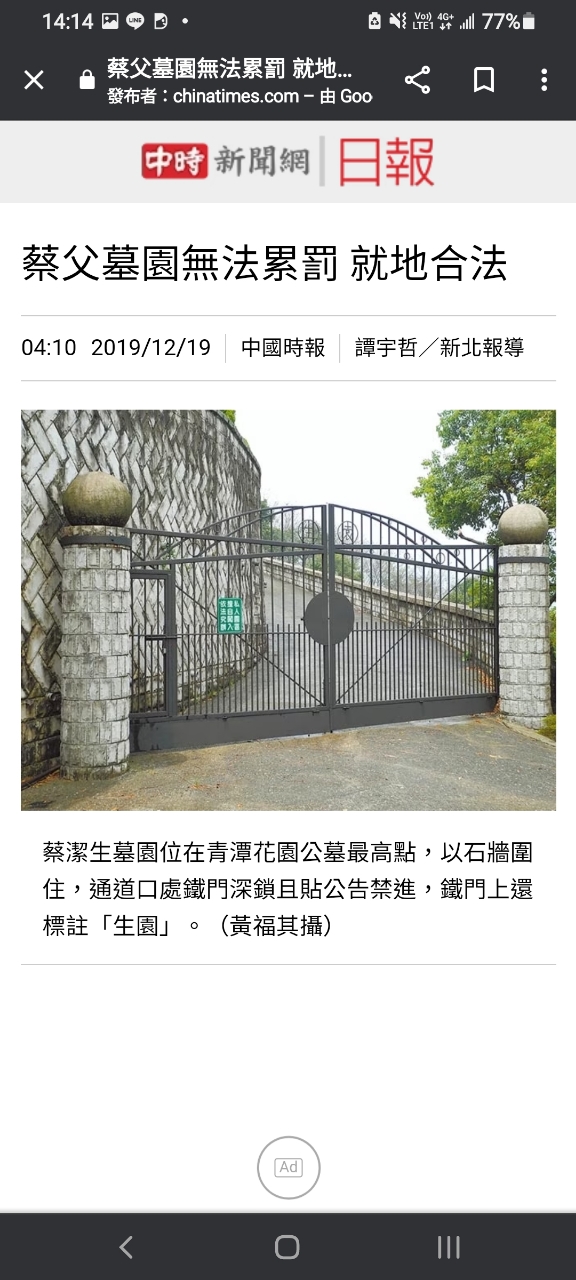 推 garra: 蔡英文爸的墓地真的很扯 蔡應該要自己處理. 203.75.79.86 07/31 19:56