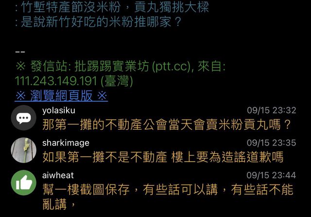 推 Szss: 新竹有三寶 米粉 貢丸 不動產 49.217.194.254 09/16 07:58