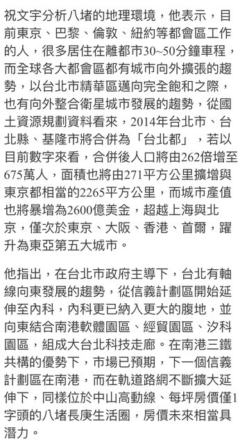 → gothmog: 一個區域 大家比的就是 交通 教育 就業 等硬實力 09/18 07:29