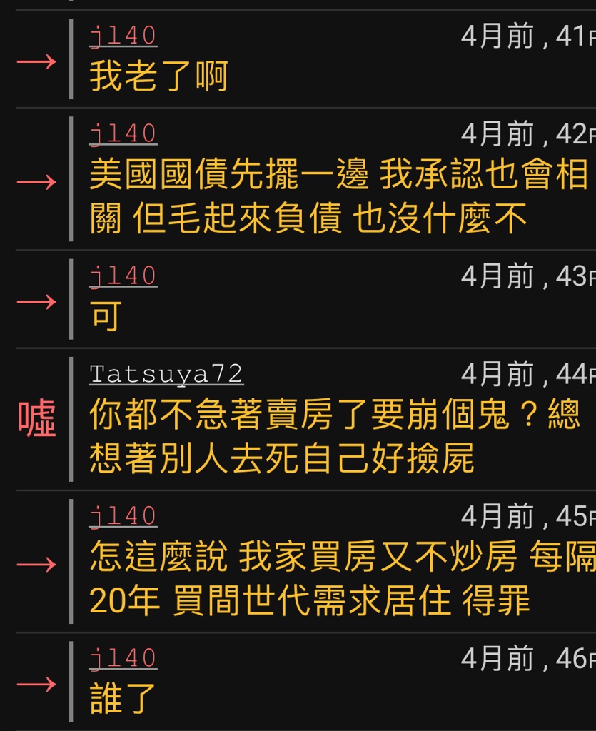 → freekid: 好了啦,jl40你不就是個雙標炒房仔而已,講的好像持有多 09/18 14:40