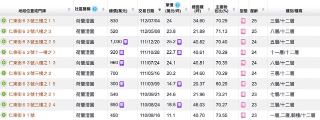 本物件附近地址實價登錄 :