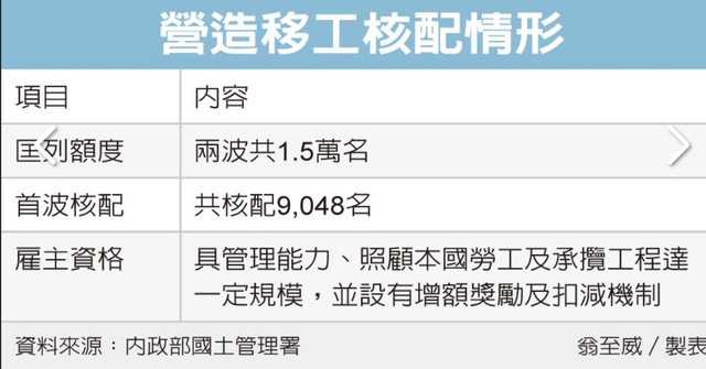 示,考量首波核配的營造業移工額度不足,經跨部會協調後,勞動部已同意追加7,000名