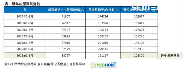 扣除「預售屋」交屋數量的數字後,卻