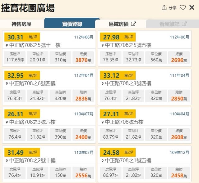 該物件鄰近實價登錄交易資訊