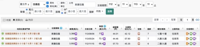 本物件附近地址實價登錄 :(內政部實登無扣除車位再計算單坪價格,故有誤差,附