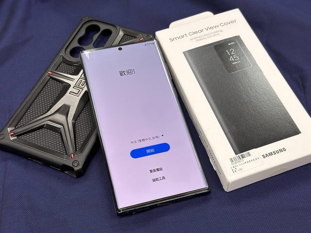 商品內容:手機一隻、全新未使用三星原廠快充頭一顆、全新三星S22U原廠透視感應皮套一個、UAG保護殼一個(如照片)