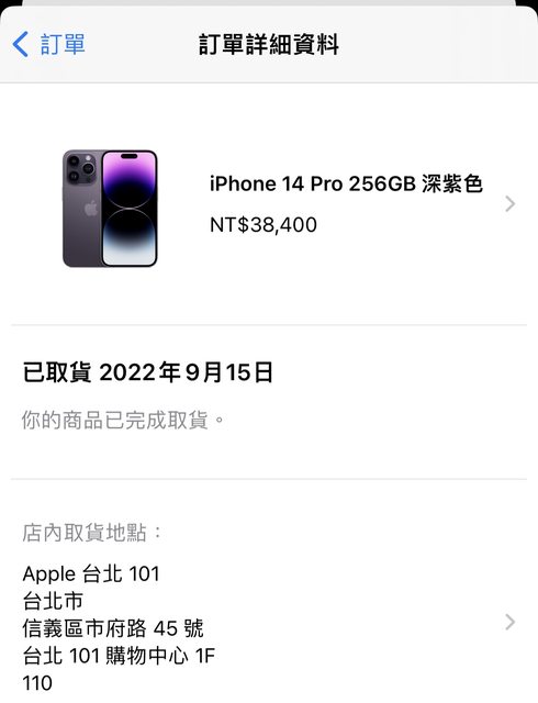 標題[賣/雙北/面交] iphone14 pro 256G 紫色