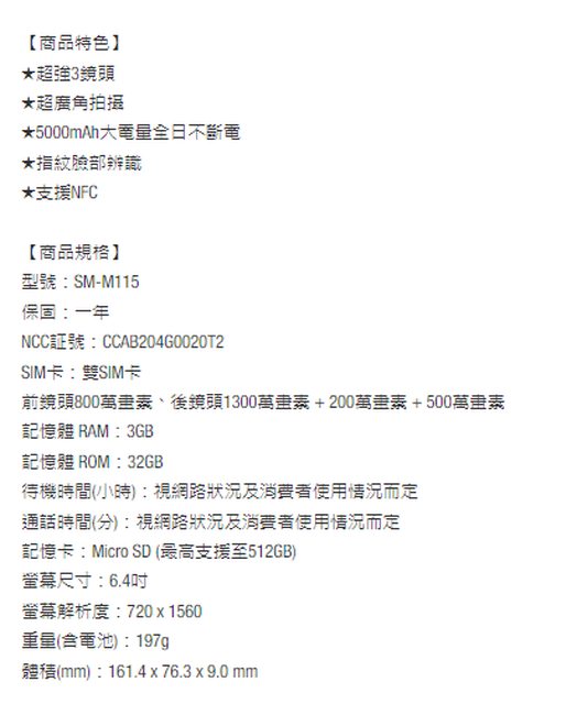 欲售物品:SAMSUNG Galaxy M11 3G/32G SM-M115 晨曦藍