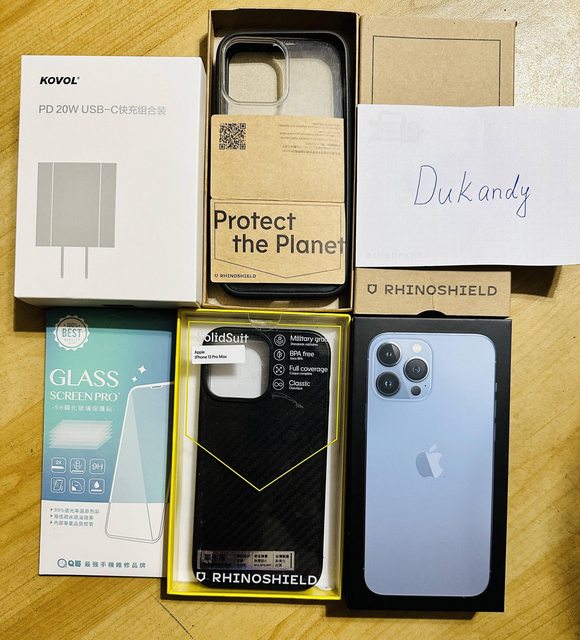【配件】原廠盒裝、全新原廠充電線、兩個犀牛盾手機殼、一片全新鋼化膜、一組全新20W充電器跟充電線
