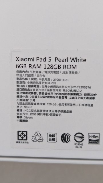 標題[賣/雲林斗六/皆可]小米平板5 珍珠白 6/128