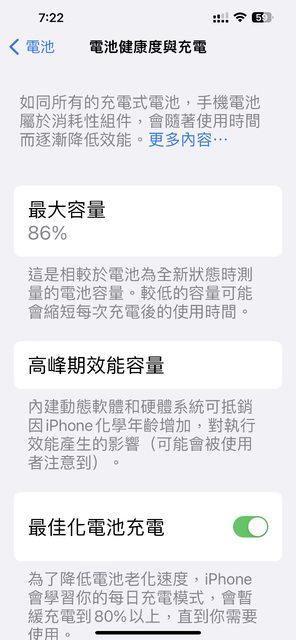 電池健康度86%,有貼螢幕、鏡頭保護貼,外觀良好,不過充電孔