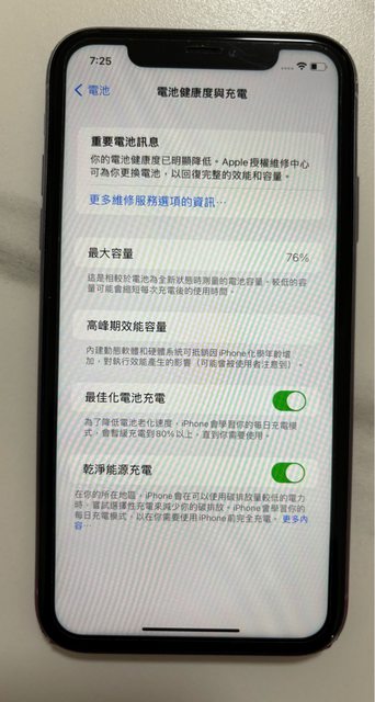 機身無刮傷,膜可自行撕掉,手機無維修過,電池健康度76%。