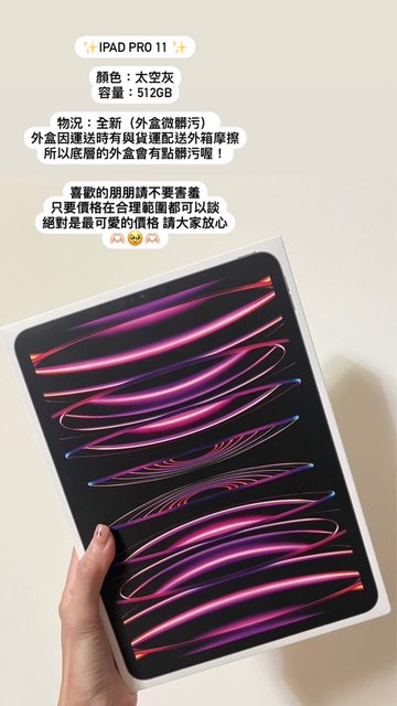 標題[賣/台南/面交] iPad Pro11吋wifi 512g 太空灰