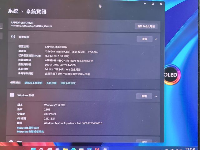 ◎筆電型號: ASUS Vivobook S 14X OLED (S5402ZA)