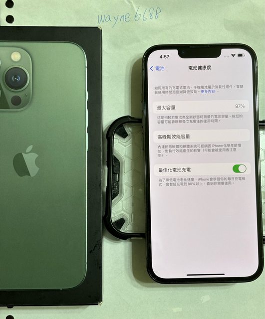 物品狀況:電池健康度97%,手機全程裝殼&保護貼,外觀無明顯外傷,一切功能皆正常。