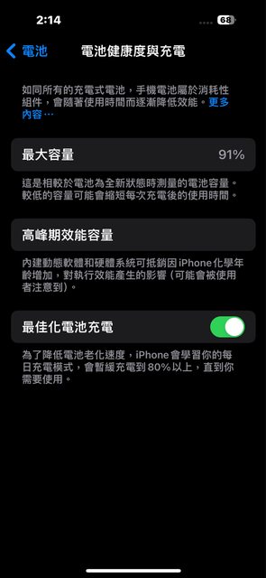 電池健康度91%
