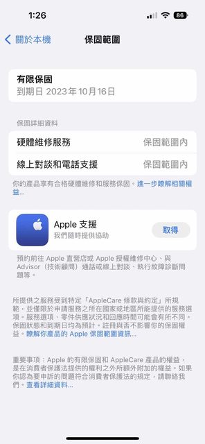 保固日期:2023/10/16