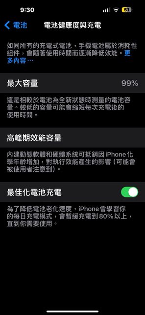 池健康度100%,這幾天升級iOS17後變99%,保固到2023/12/15。