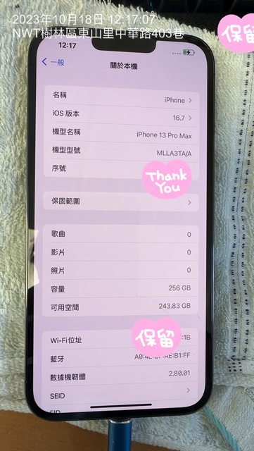 欲售物品:iphone 13 pro max256g鈦黑