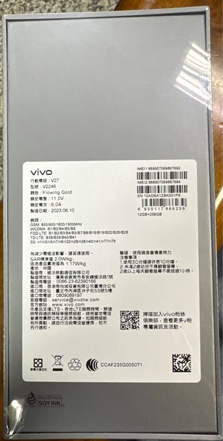 欲售物品:VIVO V27 5G 金色 (12G/256G)