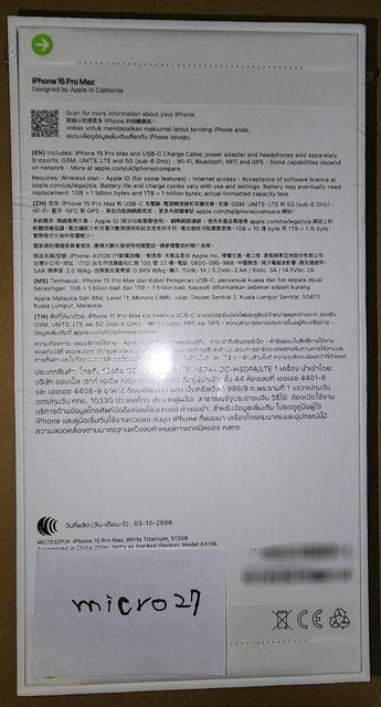 欲售物品:iPhone 15 Pro Max 512g 白