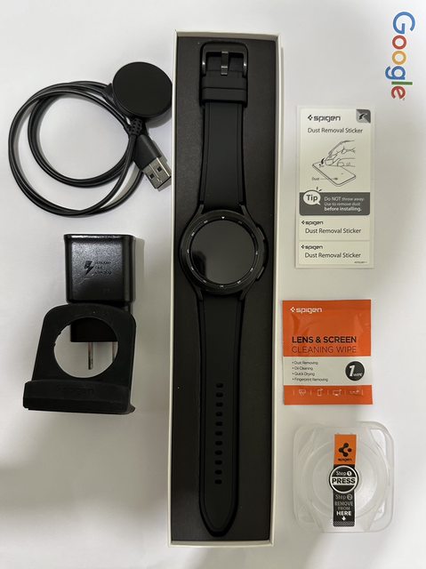 盒裝內含:手錶、充電器與他牌基座、Tag(已拆封)和一些配件(未拆封)如圖。