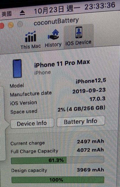 目前電池健康度為100%