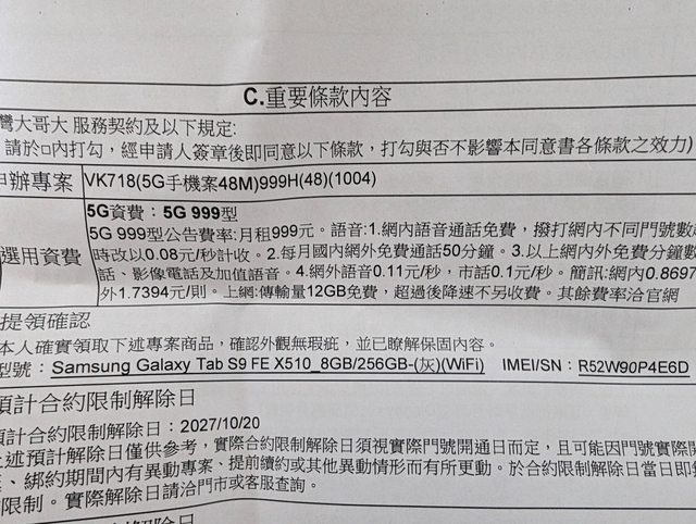 購買來源:請參考台哥大的續約