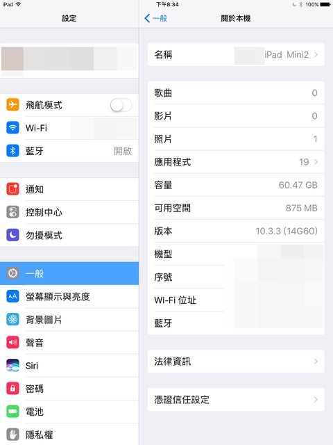 欲售物品:iPad mini 2 Wifi 64g 銀色