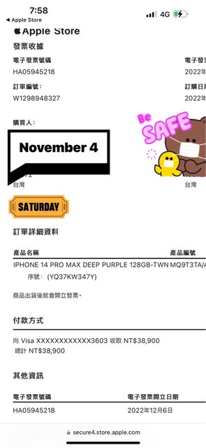 欲售物品:iPhone 14 pro max 128GB 紫色