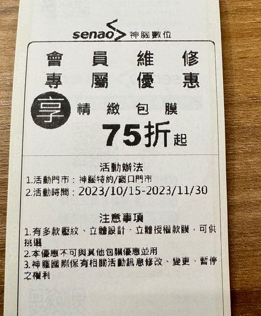購買日期:原機2022年10月,2023/11/7收到整新機