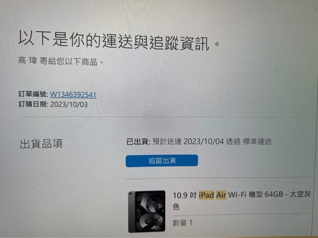 購買日期:2023/10/03 訂單編號W1346392541