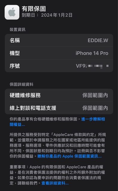 保固日期:2024年1月2日,保固內