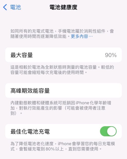 女用機、電池健康度90%