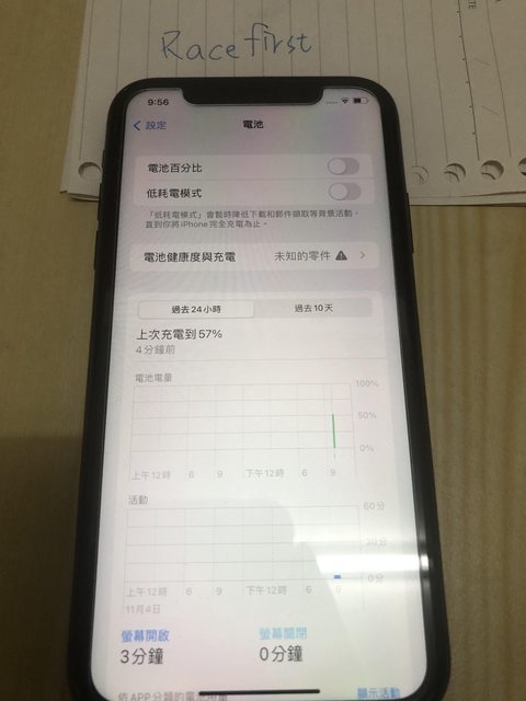 物品狀況:電池健康度無法顯示,因換了副廠電池,且無法充到100%,其餘正常。