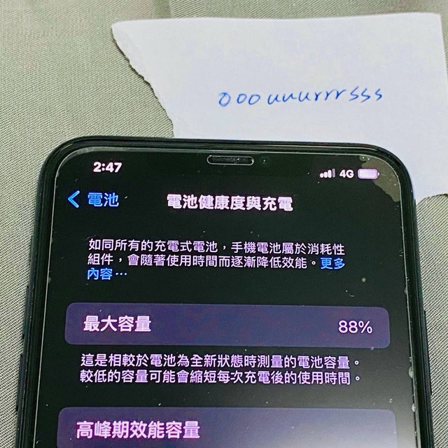 物品狀況:正常使用中,電池容量88%,側邊如圖有些許刮痕,背面、鏡頭及螢幕完整無
