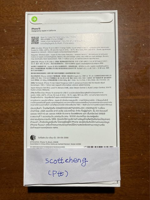 欲售物品:iPhone 15 256g 黑色