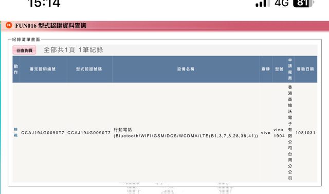 Vivo1904 三年前左右的型號