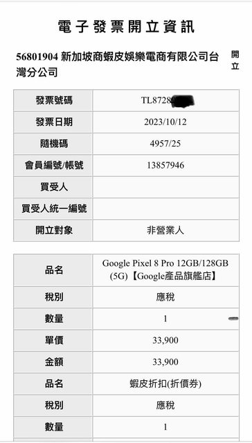 保固日期:2024/10/12(發票是10/12)