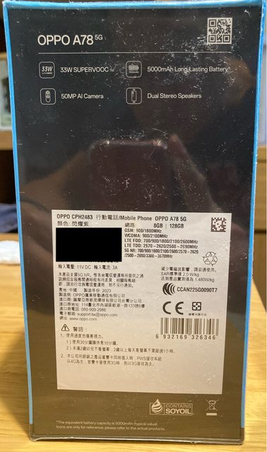 欲售物品:OPPO A78 5G 8G/128G 閃耀紫