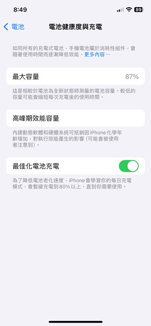 物品狀況:電池健康度87% ,功能正常,全程都有貼螢幕保護貼及裝殼,邊框有正常使用