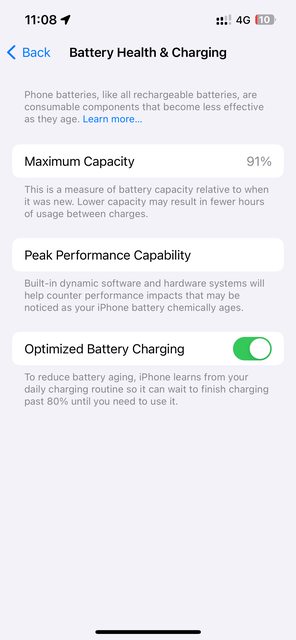 電池健康度91%
