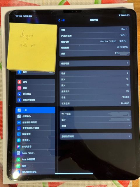 欲售物品:iPad Pro 12.9吋 m1 WiFi 深灰 128G